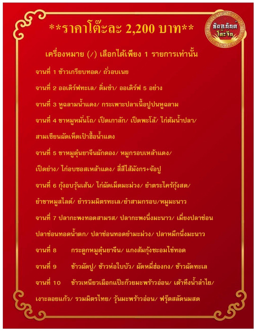 เมนูอาหารชุดละ 2200 บาท