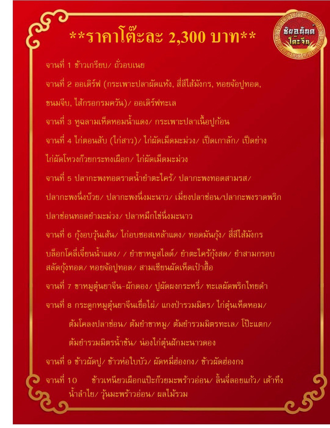 เมนูอาหารชุดละ 2300 บาท