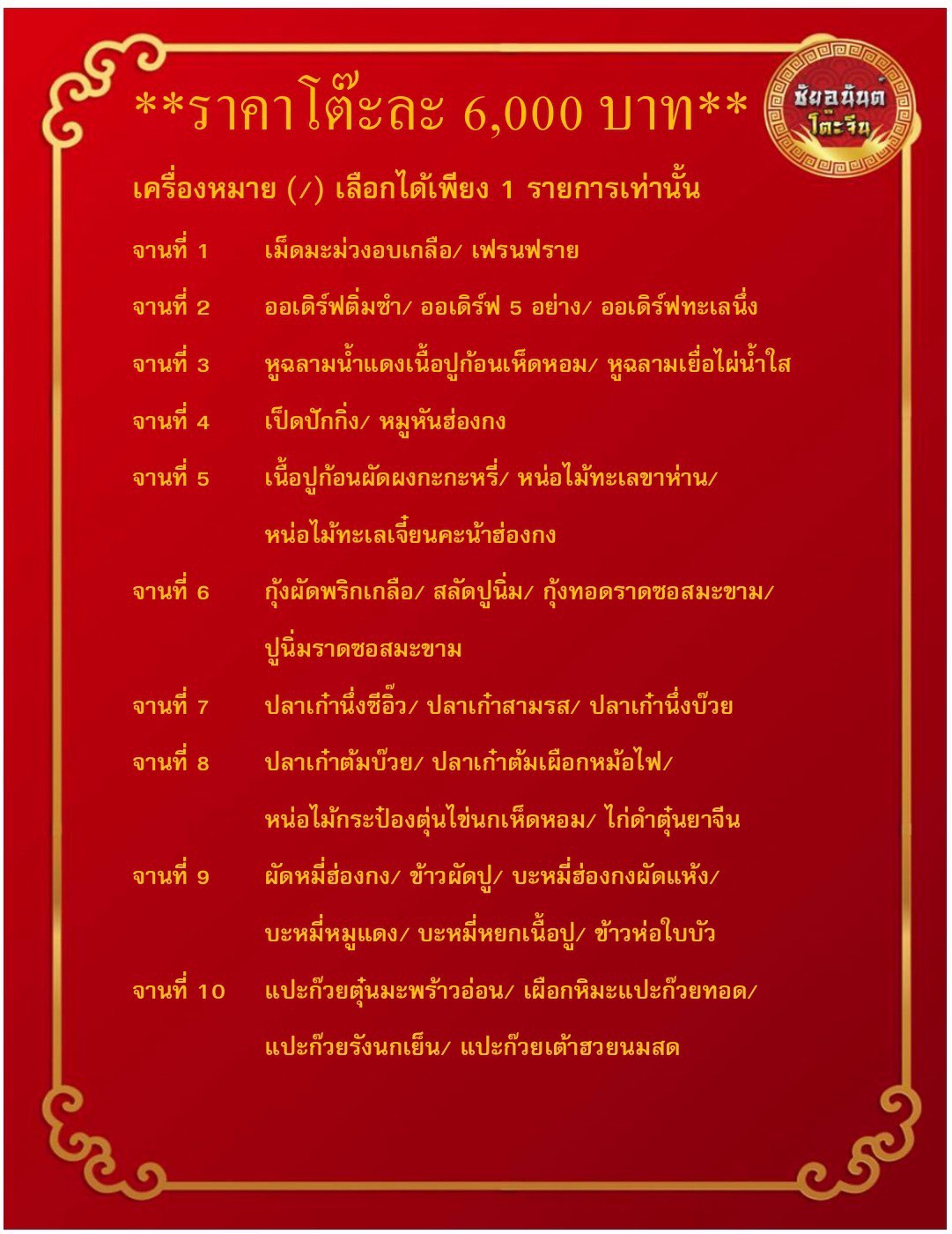 เมนูอาหารชุดละ 6000 บาท